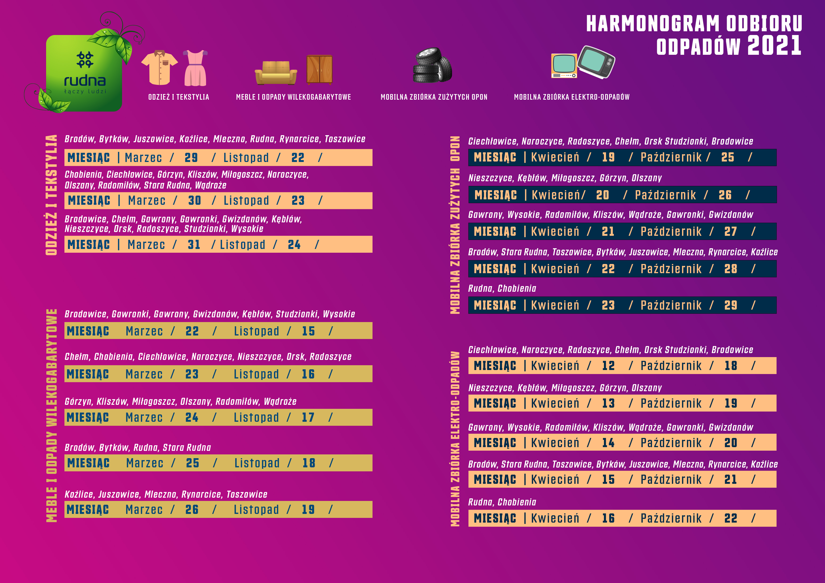 Zuzyte opony, zuzyty sprzęt elektryczny i elektroniczny, odpady odziezy i tekstyliów, odpady wielkogabrytowe (h.5)